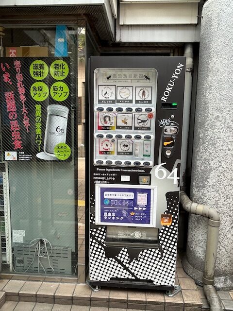 以前より興味があった昆虫食の自販機をとうとうみつけましたので
