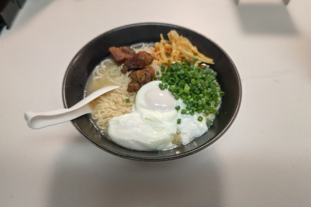 トッピングは、豚の角煮、メンマ、半熟卵にネギです!