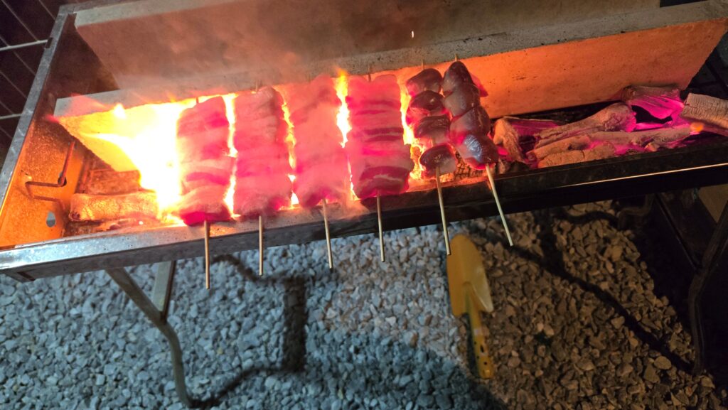 豚バラ、とりももにとり皮、砂ずり、レバーとハツ、トマトベーコン巻き