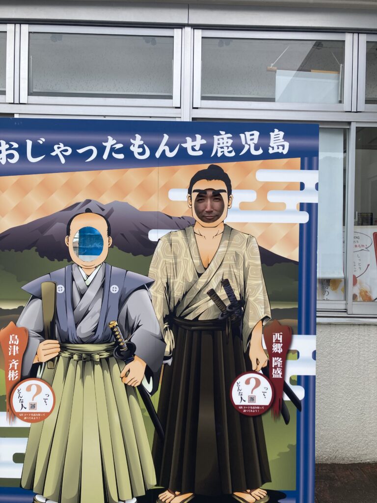 途中、鹿児島県っぽい顏ハメが合ったので記念に一枚📸 ここはたしか桜島PAです。