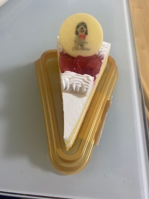 今年のケーキは愛犬の似顔絵付きです!!