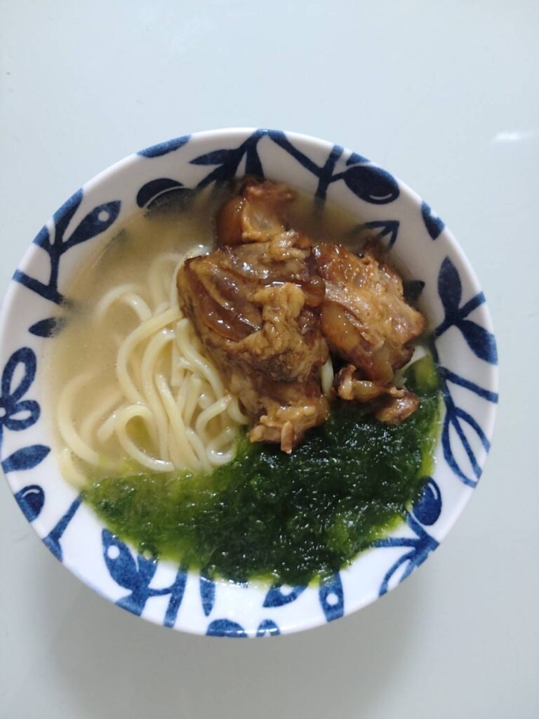 自宅でソーキそばを作ってくれる妻に感謝し、今日も頑張ります。